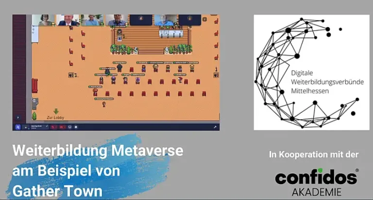 Die anschließende Podiumsdiskussion unter Leitung von Frank Schmidt, Projektmanager der Digitalen Weiterbildungsverbünde Mittelhessen bei der Regionalmanagement Mittelhessen GmbH, stand unter dem etwas provokanten Motto „Metaverse – virtueller Schein oder realistische Zukunftsperspektive der Fachkräftesicherung?“Thomas Kupka, Leiter Personal und Recht bei der Neusehland Hartmann GmbH & Co. KG erläuterte, dass er im Rahmen der Corona-Pandemie zunächst mit Unterstützung der Confidos Akademie eine eigene Online-Akademie mit Lernplattform umgesetzt habe. In einem weiteren Schritt sei nun von der Confidos Akademie für Neusehland eine Azubi-Lern- und Arbeitswelt in Gather Town erstellt worden. Mit diesem Angebot möchte sich der in über 40 hessischen Standorten vertretene Optik- und Hörakustikanbieter laut Kupka als attraktiver Arbeitgeber insbesondere auch für jüngere Fachkräfte positionieren. Gezieltes Lernen und Arbeiten sowie die soziale Interaktion in den virtuellen Welten kommen bei den Auszubildenden von Neusehland nach Einschätzung von Kupka sehr gut an. Für Kupka sind zudem Effizienzgesichtspunkte sehr wichtig: „Durch fehlende Wegstrecken werden Zeitfaktoren und Kosten minimiert. Durch die Nutzung digitaler Räume werden somit reale Kosten eingespart. Ein weiterer nicht zu unterschätzender Aspekt für Neusehland, diesen erfolgsversprechenden Weg im Metaverse weiterzugehen!“Holger Fischer formulierte seine Hoffnung: „Ich wünsche mir mehr Unternehmen wie Neusehland, die offen für virtuelle Innovationen wie beispielsweise Gather.town sind und die Bereitschaft mitbringen, systemspezifisch digitale Bildungsangebote zu entwickeln.“