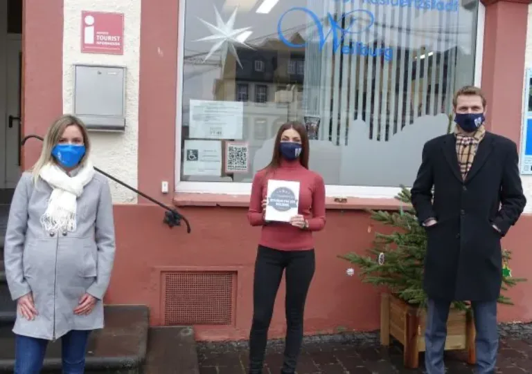 Eine besondere Auszeichnung ist dem Marketing-Team vom Reiseanbieter für Premium-Kurzreisen „Travelcircus“ verliehen worden, darüber freuen sich Bürgermeister Dr. Johannes Hanisch, die Leiterin des Stadtmarketings Vanessa Bäcker und Elena Weber von der Weilburger Tourist-Info, die sich für die Beiträge des Instagram-Accounts der Stadt Weilburg verantwortlich zeichnet. Bereits zum vierten Mal hat Travelcircus 1.012 deutsche Kleinstädte anhand der Anzahl ihrer Instagram-Beiträge analysiert und zum vierten Mal in Folge steigt die Stadt Weilburg kontinuierlich in der Liste der Top 100 auf. Gemessen an der Anzahl der Instagram-Posts hat es die Residenzstadt in diesem Jahr auf Platz 42 geschafft, im Vorjahr auf Platz 54, in 2018 war es Platz 61 und im Jahr 2017 der 65. Platz der beliebtesten Kleinstädte Deutschlands. Beim Ranking der hessenweit elf ausgewerteten Kleinstädte ist Weilburg sogar auf dem fünften Siegertreppchen gelandet. Im gesamten Landkreis Limburg-Weilburg ist die Stadt Weilburg die einzige Kleinstadt, die den Instagram-Award verliehen bekommen hat.