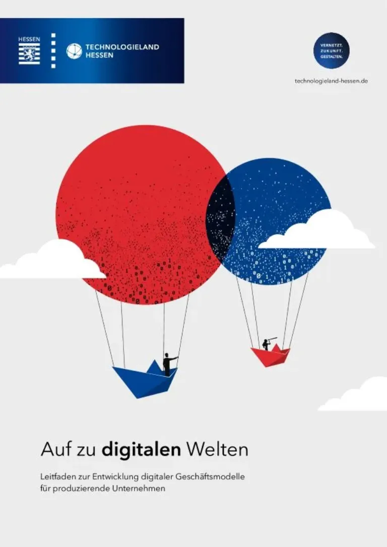 Die Broschüre „Auf zu digitalen Welten – Leitfaden zur Entwicklung digitaler Geschäftsmodelle für produzierende Unternehmen“ steht ab sofort kostenfrei als Download zur Verfügung unter: www.technologieland-hessen.de/publikationen
